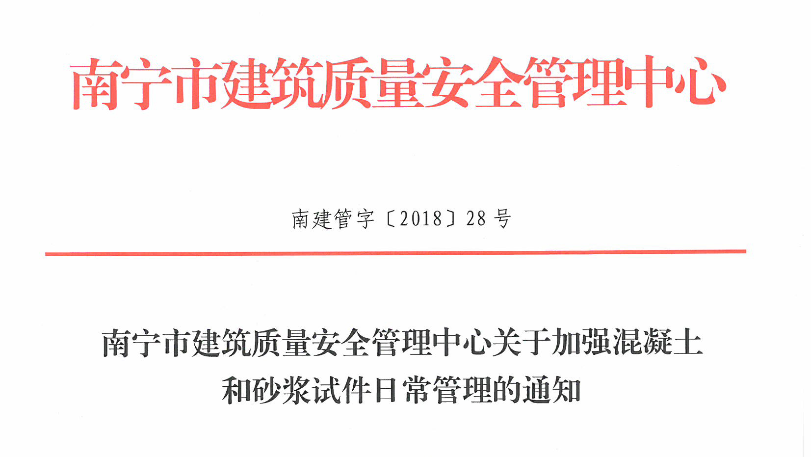 • 南寧市建筑質(zhì)量安全管理中心關(guān)于加強混凝土和砂漿試件日常管理的通知